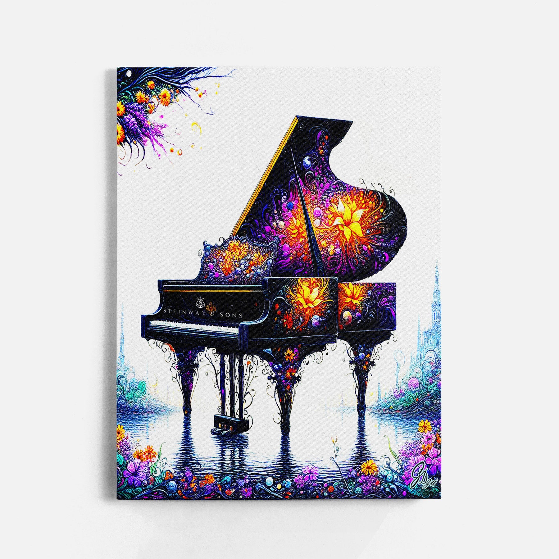 - Available in multiple sizes — from small accents to larger piano wall art centerpieces.